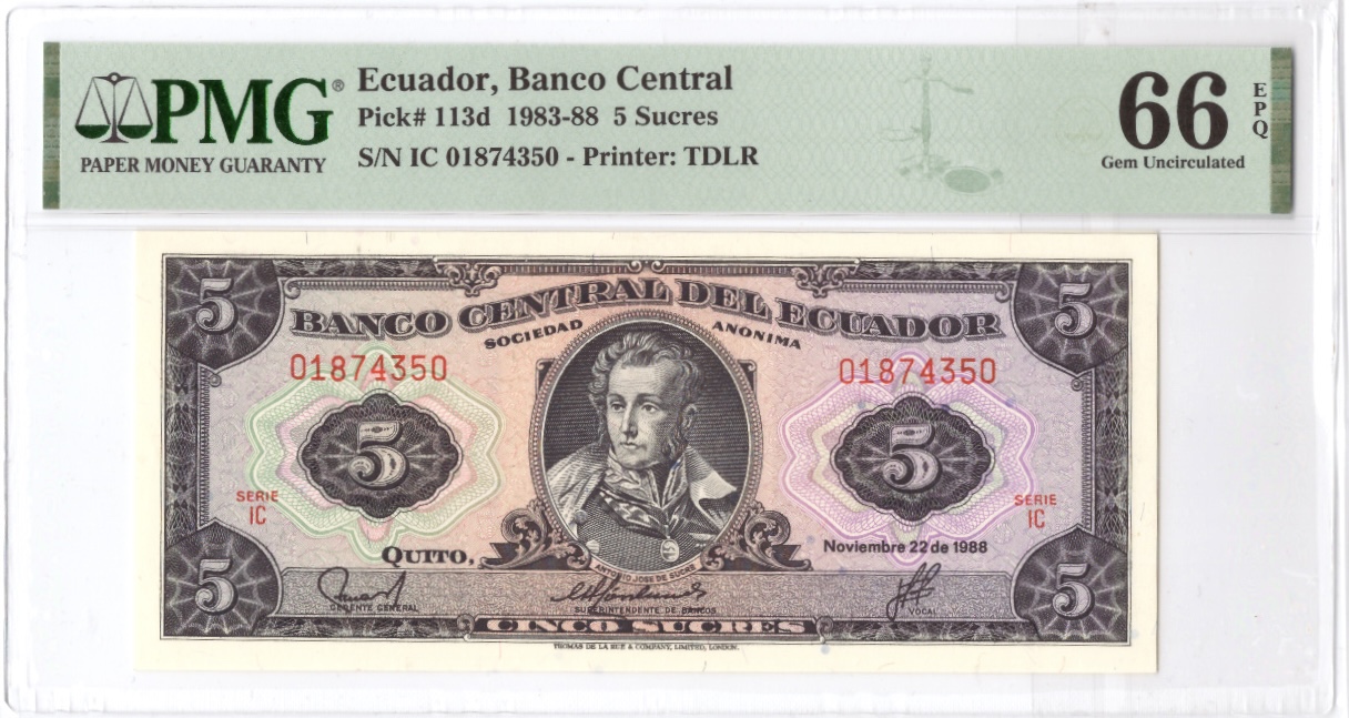 5 Sucres, Ecuador 1988