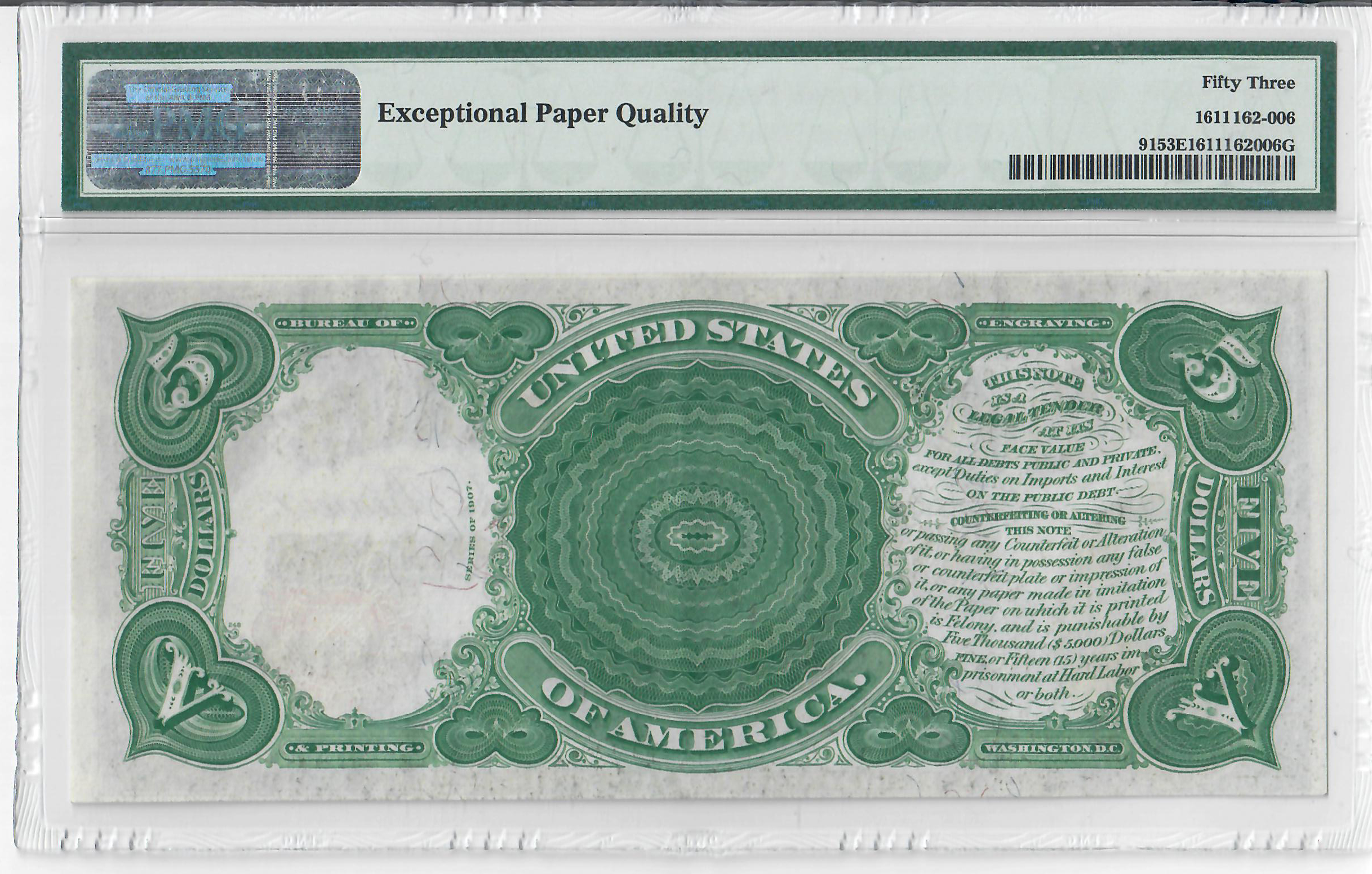 United States of America$5 1907, Legal TenderFr# 91Speelman | WhitePMG: 53 EPQ
