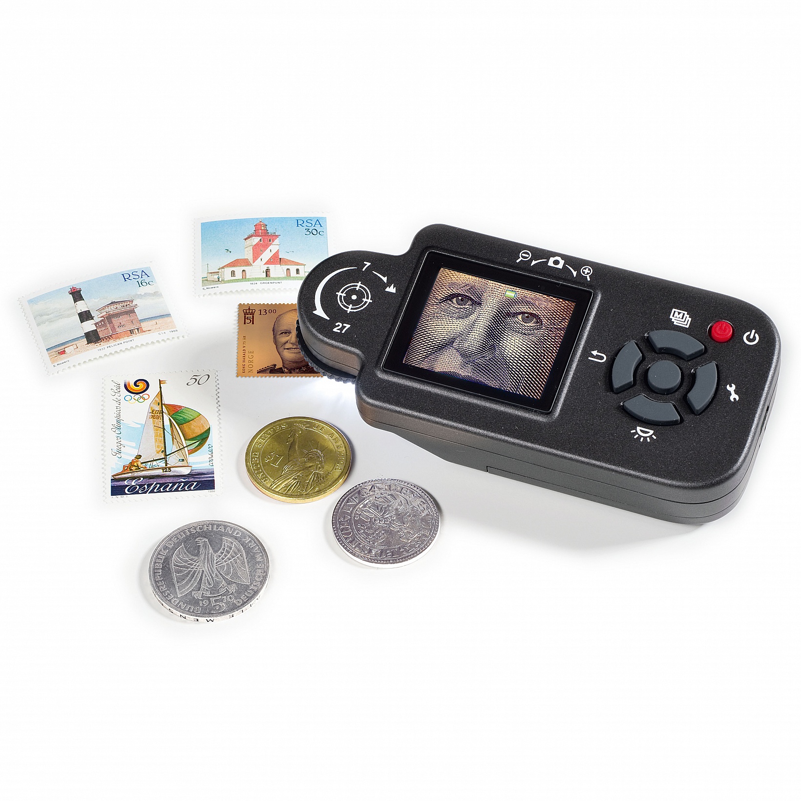 The integrated LCD colour display delivers sharp, high-resolution detail. Four white high-tech LEDs allow you to examine your objects even in poor light conditions. Image files can be easily transferred to your PC or notebook via USB port. Use the built-in camera function to capture and save your best images.