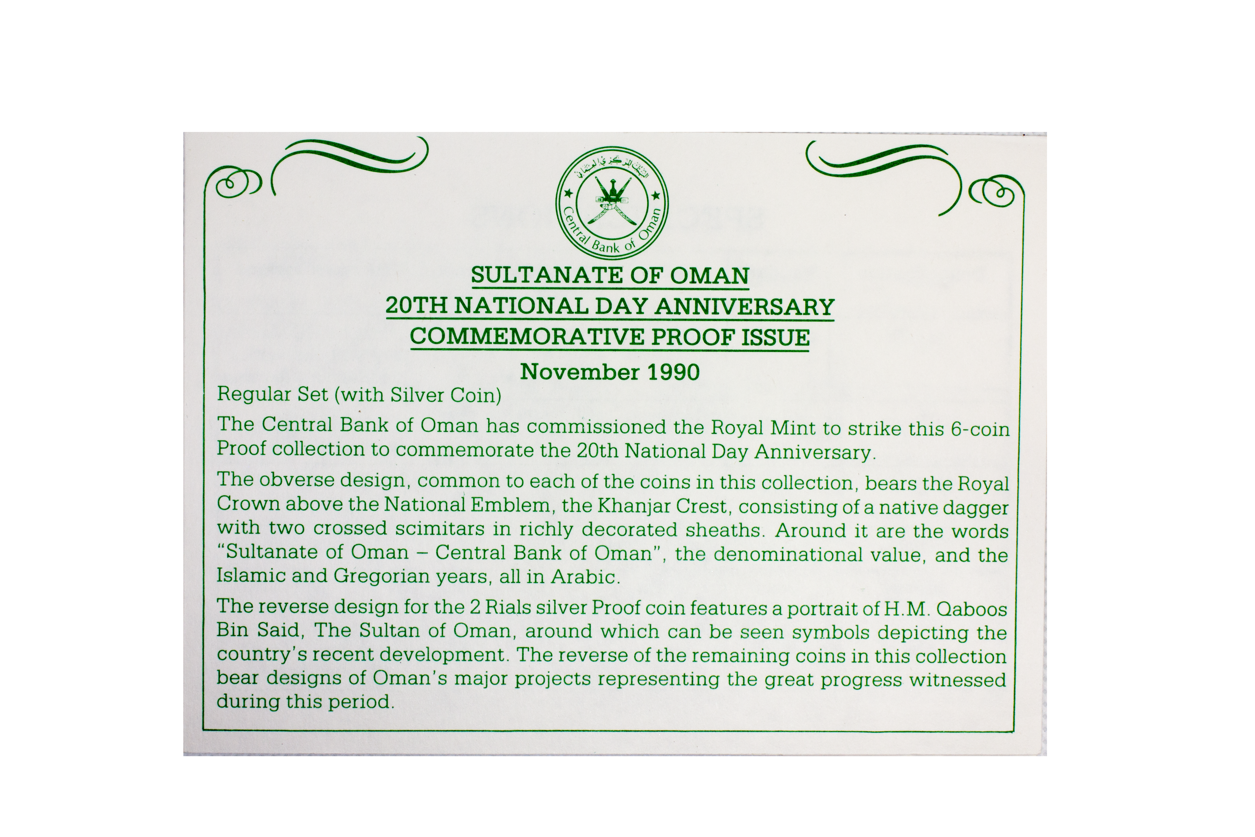 Royal Mint Commemorative Proof Issue, Sultanate of Oman 1990